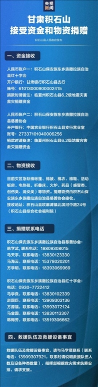 ·19日,甘肅臨夏州積石山縣發(fā)布公告,公布面向社會接受資金和物資捐贈方式。