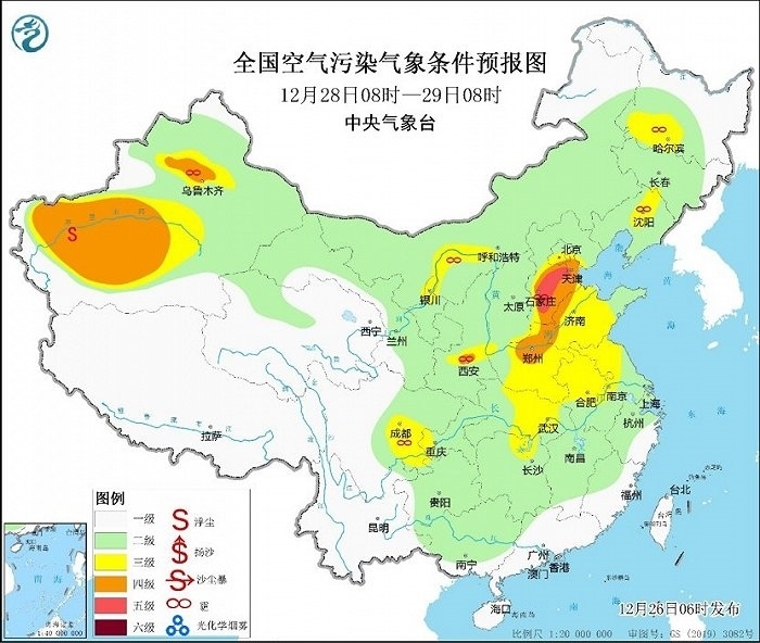 冷空氣勢(shì)力弱,霧和霾天氣又要登場(chǎng)。今天,華北、黃淮等地有輕度霾,局地中度或重度霾,27日華北中南部大氣擴(kuò)散條件將有所改善。28日至30日,華北中南部、黃淮中西部、汾渭平原等地大氣擴(kuò)散條件再次轉(zhuǎn)差,將有輕至中度霾,部分地區(qū)重度霾。此外,28日至30日的夜間至上午時(shí)段,華北中南部、黃淮、江淮東部、江漢、四川盆地等地的部分地區(qū)有大霧,局地有能見度不足200米的強(qiáng)濃霧。