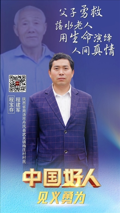 程寶存,男,1953年8月生;程建軍,男,1978年6月生。二人為父子關(guān)系,系陜西省商洛市丹鳳縣武關(guān)鎮(zhèn)梅莊村村民。2021年9月,父子兩人協(xié)力救助落水老人,父親程寶存不幸被水沖走獻出了寶貴生命。程建軍說:“這件事誰遇到都會去做的,我相信我爸也不會后悔自己的選擇?!?/p>