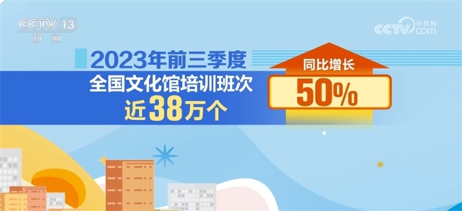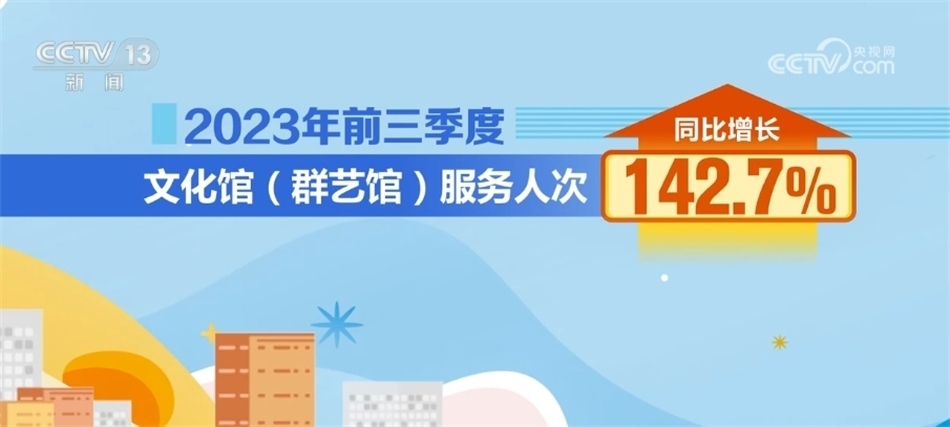 據(jù)統(tǒng)計(jì),2023年前三季度公共圖書(shū)館總流通人次同比增長(zhǎng)55.2%;2023年前三季度,全國(guó)文化館培訓(xùn)班次近38萬(wàn)個(gè),同比增長(zhǎng)50%;文化館(群藝館)服務(wù)人次同比增長(zhǎng)142.7%。