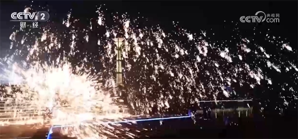 新年將至,大南門歷史文化街區(qū)里豐富多樣的民俗活動(dòng)吸引了大批的游人。其中,特色表演滾花龍表演講究“圓”而“猛”,龍身舞動(dòng)起來后更像是滾動(dòng)的花環(huán),預(yù)示著新的一年里希望大家活力滿滿、努力奮進(jìn)的美好祝愿。1600℃的鐵汁被高高拋起,被木板奮力打散,瞬間,夜空中萬點(diǎn)星辰散開,美不勝收。