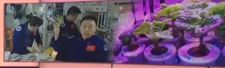 航天員 蔡旭哲:一共長了兩棵,吃了一棵。另外一棵留下來了,一直長大讓它變成了種子,后邊都開花了。親自品嘗到了這種生菜,特別感覺到很美味。能夠嘗到自己在太空種出來的生菜,我覺得是感到無比幸福。