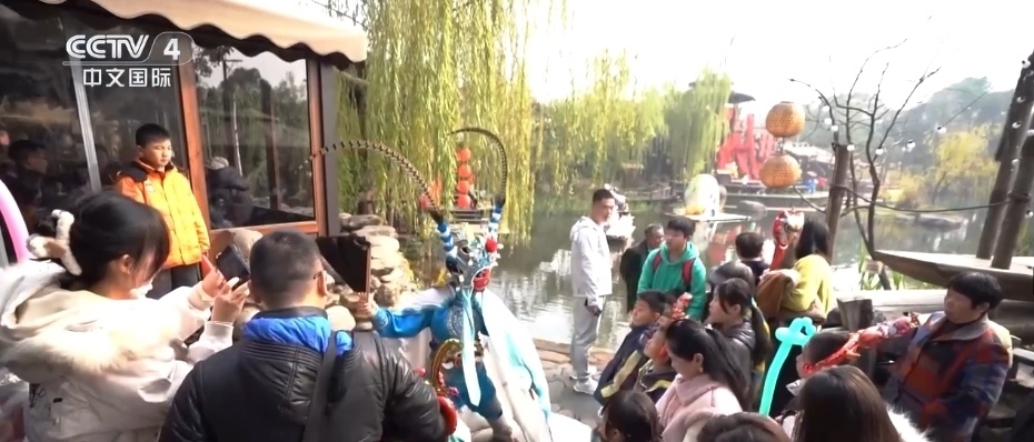 這個(gè)假期,體驗(yàn)國(guó)潮、非遺成了休閑旅游的新熱點(diǎn)。在山西大同,博物館以“龍”為主題,通過(guò)陶瓷器、青銅器等包含龍?jiān)氐恼蛊?,讓游客感受傳統(tǒng)文化的魅力。在江蘇蘇州,虎丘塔下的元旦游園會(huì),集合了傳統(tǒng)手藝、非遺文創(chuàng)及特色小吃,吸引大批游人參與。在遼寧盤(pán)錦,人們聚在一起貼窗花、做糖畫(huà)、看表演,喜慶氛圍拉滿。湖南長(zhǎng)沙的市民游客,近距離體驗(yàn)民間戲曲、粽編等十余項(xiàng)湖湘非遺項(xiàng)目,感受濃厚的新年氛圍。廣西玉林的百年老街“十字街”上,非物質(zhì)文化遺產(chǎn)、民俗、美食一起打造了一個(gè)沉浸式互動(dòng)體驗(yàn)市集。