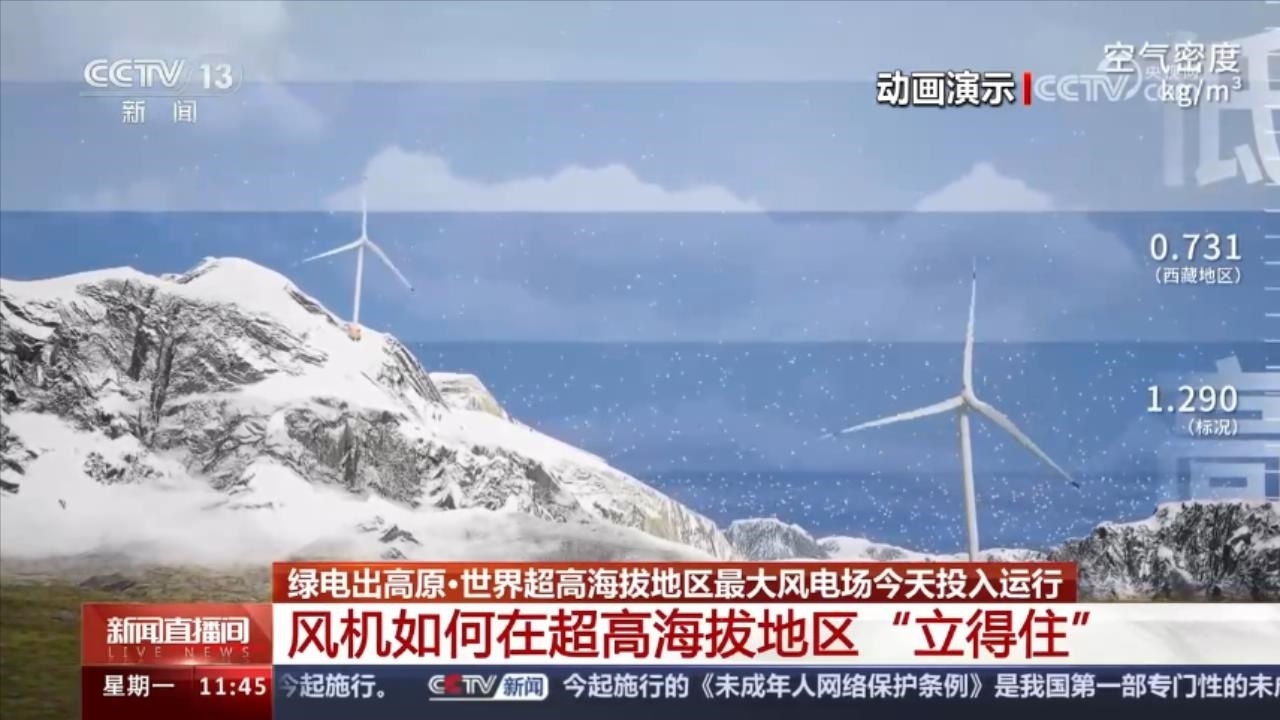 風電行業(yè)內部稱“高海拔地區(qū)的風有氣無力”。這是因為風能大小與空氣密度成正比,而高海拔地區(qū)空氣密度低,與平原地區(qū)同等風速條件相比,高海拔地區(qū)的風機轉速更慢、發(fā)電功率更低,即風大但帶不動。
