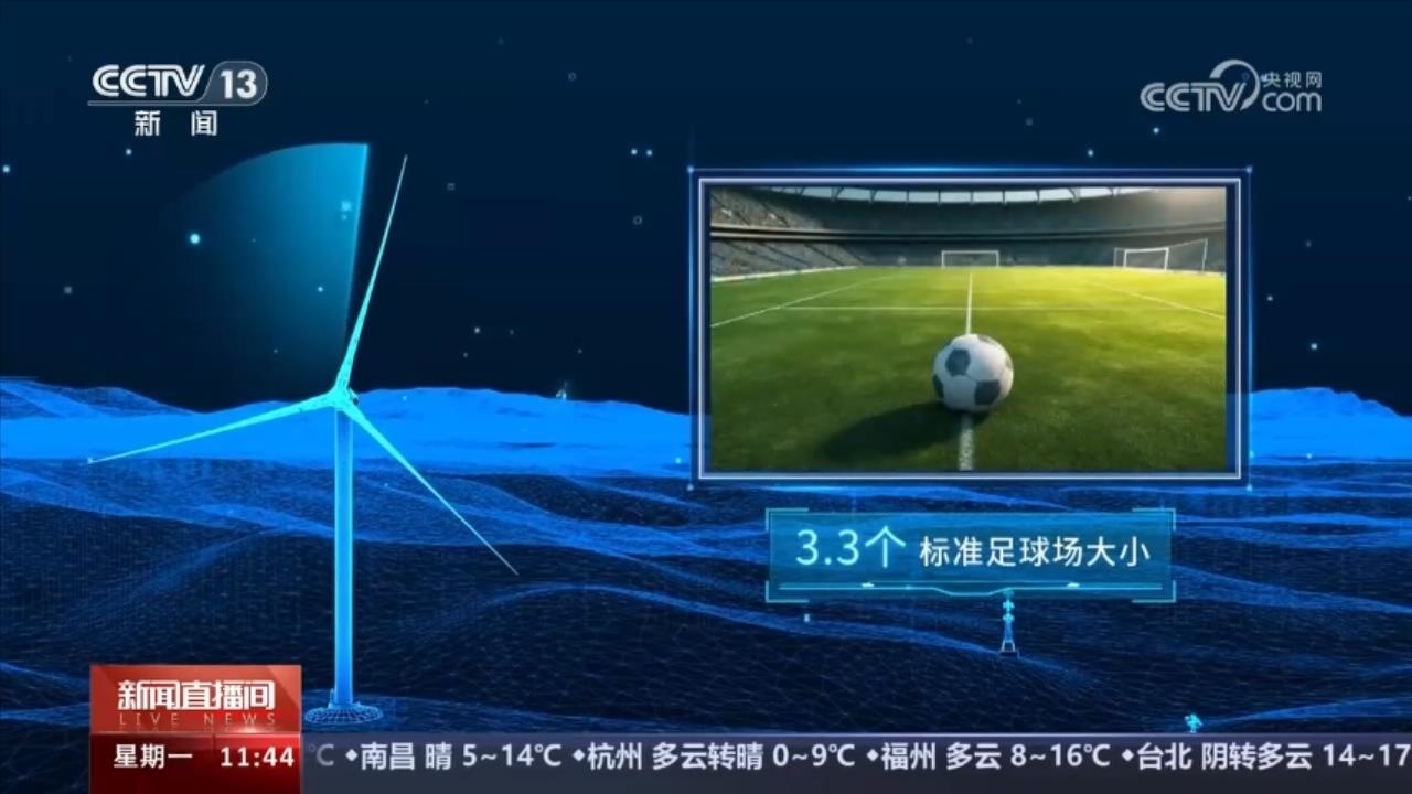 173米,是歐瑪亭嘎風電場的風機葉片直徑,其掃風面積相當3.3個標準足球場大小。