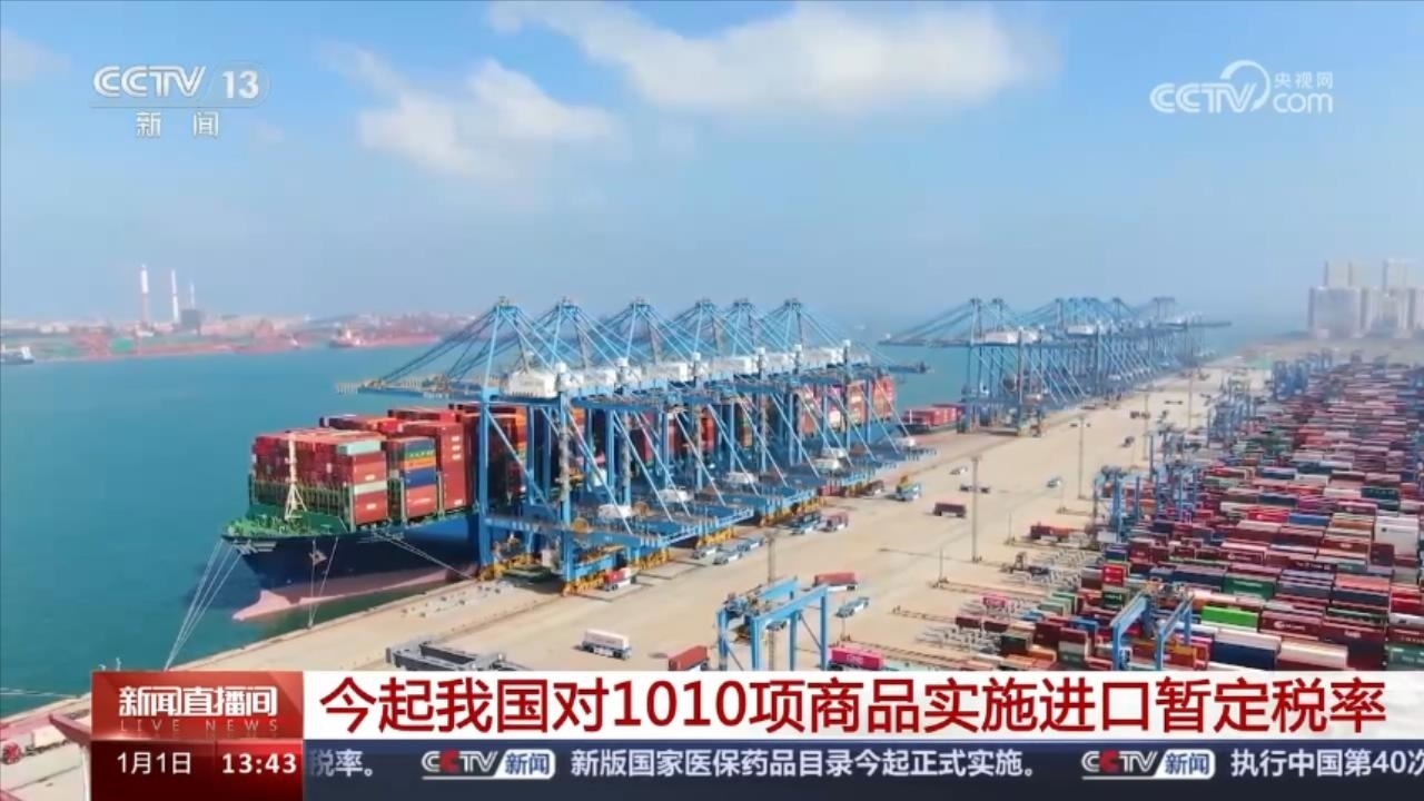 央視網(wǎng)消息:為增強國內(nèi)國際兩個市場、兩種資源聯(lián)動效應(yīng),維護(hù)我國產(chǎn)業(yè)鏈、供應(yīng)鏈穩(wěn)定順暢,1月1日起,我國對1010項商品實施低于最惠國稅率的進(jìn)口暫定稅率。