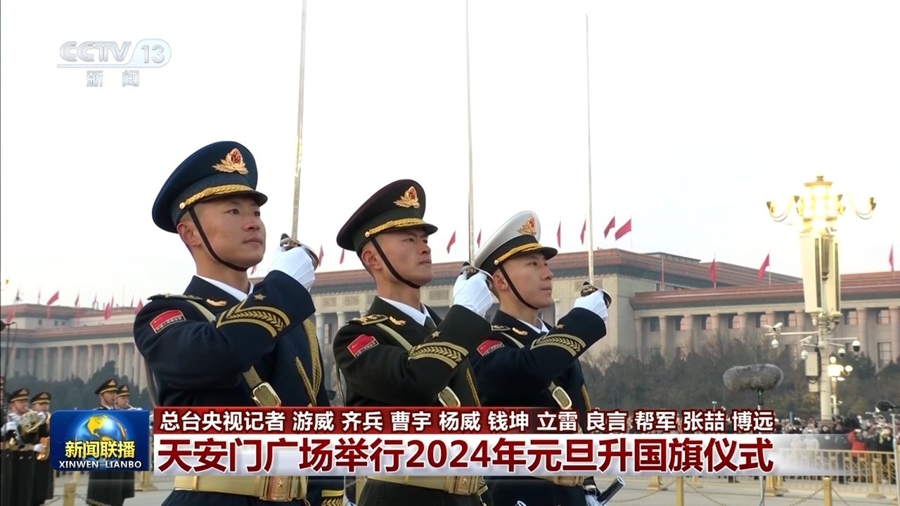 央視網(wǎng)消息(新聞聯(lián)播):2024年新年第一天,在北京天安門(mén)廣場(chǎng)舉行了隆重莊嚴(yán)的升國(guó)旗儀式。