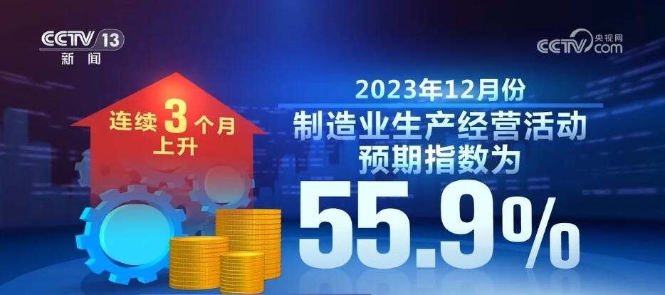 數(shù)據(jù)顯示,2023年12月份,制造業(yè)生產(chǎn)經(jīng)營活動預(yù)期指數(shù)為55.9%,連續(xù)3個月上升,表明制造業(yè)企業(yè)對市場發(fā)展信心不斷增強。2023年12月份,高技術(shù)制造業(yè)和裝備制造業(yè)采購經(jīng)理指數(shù)分別為50.3%和50.2%,繼續(xù)保持擴張。