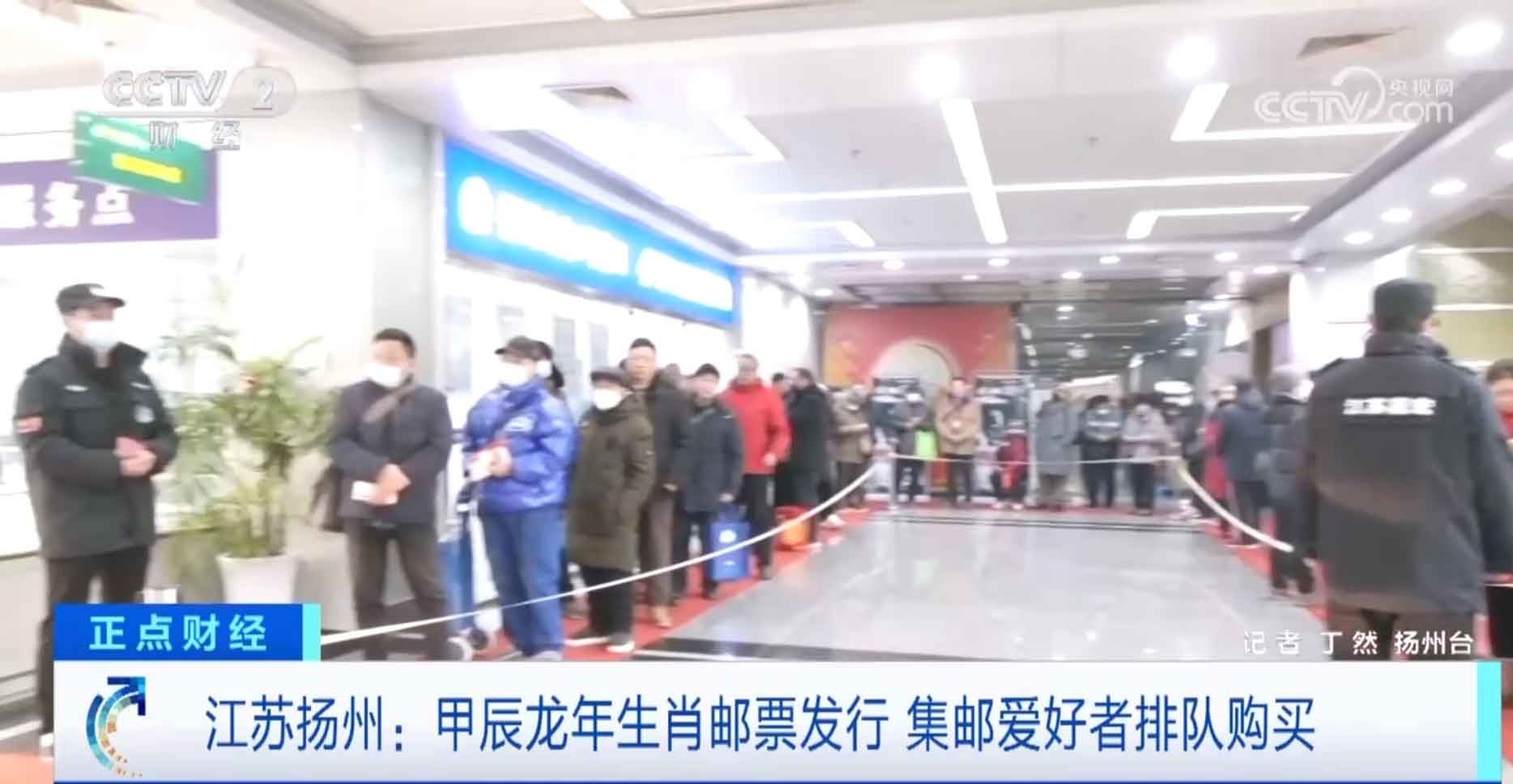 江蘇揚州:甲辰龍年生肖郵票發(fā)行 集郵愛好者排隊購買