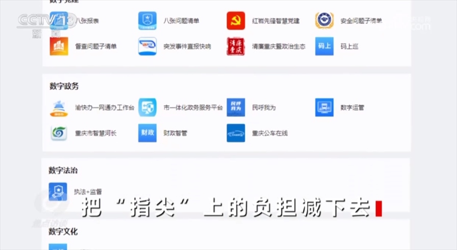 工作重心向基層服務(wù)轉(zhuǎn)變,才能切實看到為基層減負(fù)的實效。2021年,重慶市一體化、智能化、數(shù)字化政務(wù)工作平臺“渝快政”正式發(fā)布?!坝蹇煺痹谌蟹秶鷥?nèi)實現(xiàn)了上下層級、橫向跨部門之間的協(xié)同,一個“渝快政”App就可以支持過去40多項高頻次的政務(wù)辦公應(yīng)用,過去各部門App的相應(yīng)功能、各種工作群都整合在了“渝快政”一個App里面。一表通、“141”基層智治平臺也已經(jīng)接入了“渝快政”,正在向全市推廣?,F(xiàn)在,文勇手機(jī)里的53個工作群已經(jīng)解散,郝歡手機(jī)里十幾個部門App也已經(jīng)被整合到“渝快政”。?