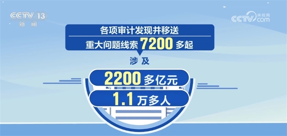 2023年1月至11月,全國共審計5.6萬多個單位,促進增收節(jié)支和挽回損失3600多億元,健全完善規(guī)章制度1.6萬多項。各項審計發(fā)現(xiàn)并移送重大問題線索7200多起,涉及2200多億元、1.1萬多人。