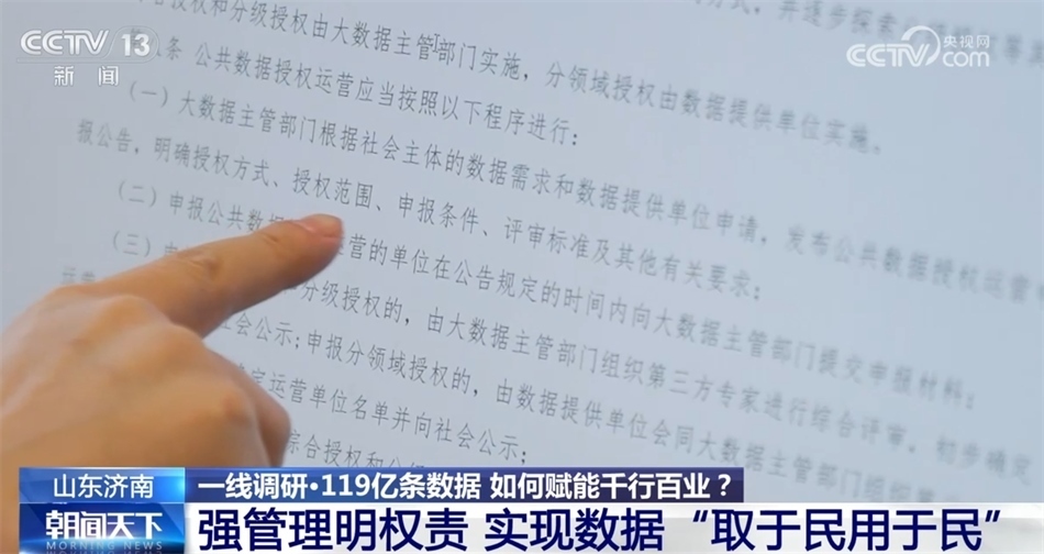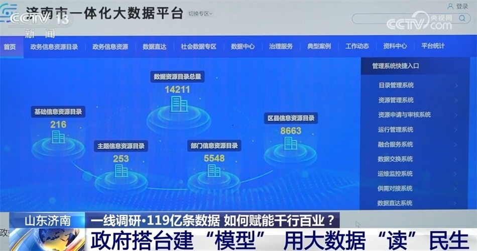央視網(wǎng)消息:一線調(diào)研,1月12日我們來關(guān)注“數(shù)據(jù)”。在山東濟(jì)南,政府部門整合了119億條公共數(shù)據(jù),創(chuàng)新各種應(yīng)用場景,不僅讓百姓辦事更便利,也給不少中小企業(yè)提供了決策支持。這百億條數(shù)據(jù)是如何賦能千行百業(yè)的?來看記者的報道。