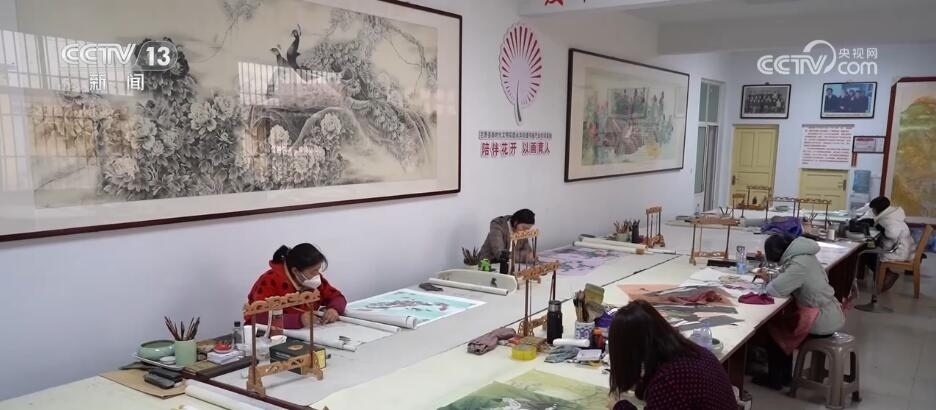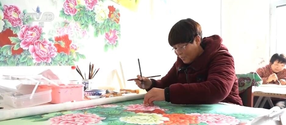 在巨野縣大義鎮(zhèn)王莊村這家新開的畫室里,十幾位村民正在這里專心畫工筆牡丹畫。今年50多歲的曹春靈算是村里的老畫師了,平常農(nóng)忙的時候她就照顧家里10多畝地,農(nóng)閑的時候就作畫,每個月能掙兩三千塊錢。這不臨近春節(jié)畫賣得好,她干脆把兒媳婦也叫過來,她今年的新打算是,要把兒媳培養(yǎng)成畫師。