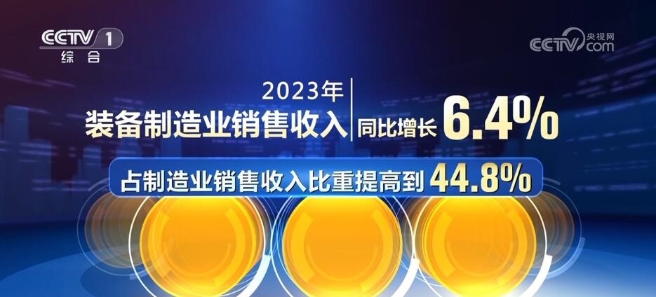 高端制造業(yè)發(fā)展持續(xù)向好,裝備制造業(yè)銷售收入同比增長6.4%,占制造業(yè)銷售收入比重提高到44.8%。其中,電動載人汽車、鋰離子蓄電池、太陽能電池“新三樣”產品相關行業(yè)銷售收入合計同比增長超過五分之一。