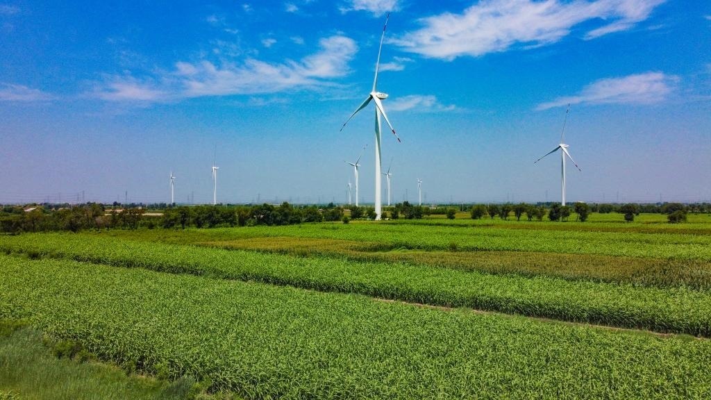 走進小王莊鎮(zhèn)李官莊村,連片的農田之間,最顯眼的是一臺臺高聳入云的風力發(fā)電機,如同一只只白鳥展開巨大的翅膀,葉片隨風緩緩轉動。