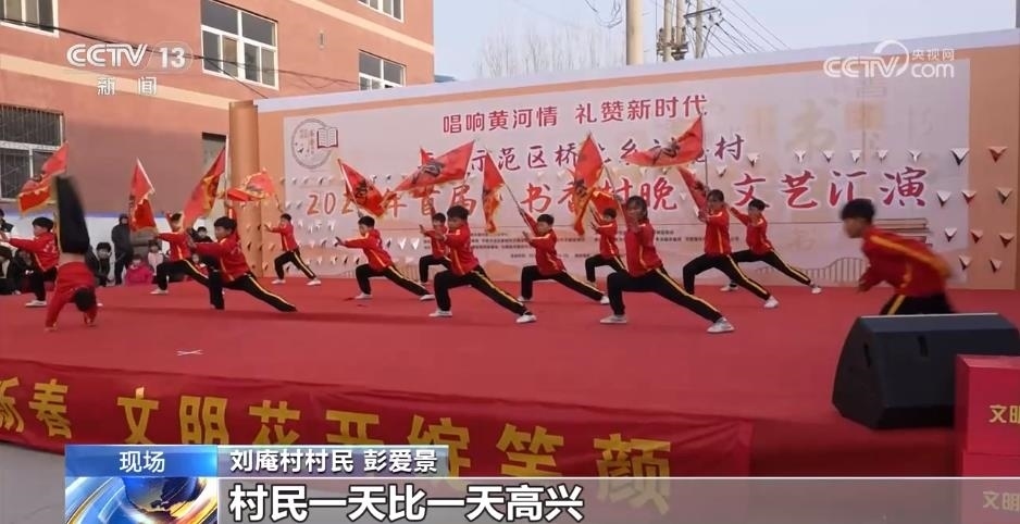 劉庵村村民 彭愛景:你看多紅火,多熱鬧,你看給俺村里文化生活也豐富起來了,村民一天比一天高興,一天比一天熱鬧、開心、紅火。