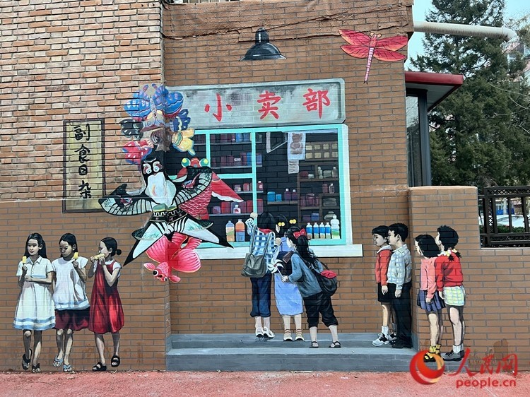 ?泊江東里小區(qū)的墻體彩繪,不僅是附近美麗的風景,還成為不少游客的打卡地。人民網(wǎng)記者 孫翼飛攝