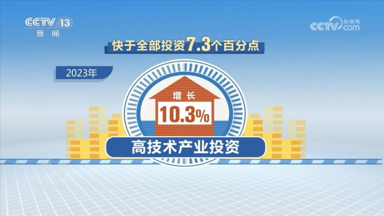 在投資領(lǐng)域,受房地產(chǎn)市場深度調(diào)整影響,2023年全年全國固定資產(chǎn)投資比上一年增長3%,而扣除房地產(chǎn)開發(fā)投資,民間投資增長9.2%。尤為值得注意的是,2023年高技術(shù)產(chǎn)業(yè)投資增長10.3%,快于全部投資7.3個百分點(diǎn)。其中,高技術(shù)制造業(yè)、高技術(shù)服務(wù)業(yè)投資分別增長9.9%、11.4%。