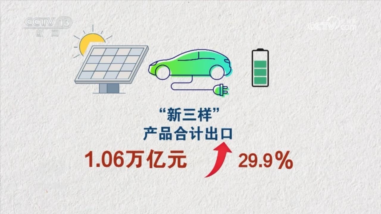 2023年,我國出口機(jī)電產(chǎn)品13.92萬億元,增長了2.9%,占出口總值的58.6%;同期勞動密集型產(chǎn)品出口4.11萬億元,占出口總值的17.3%。機(jī)電產(chǎn)品中,電動載人汽車、鋰離子蓄電池及太陽能電池“新三樣”產(chǎn)品合計(jì)出口1.06萬億元,首次突破萬億元大關(guān),增長了29.9%。船舶、家用電器的出口分別增長35.4%和9.9%。