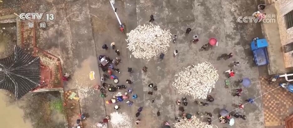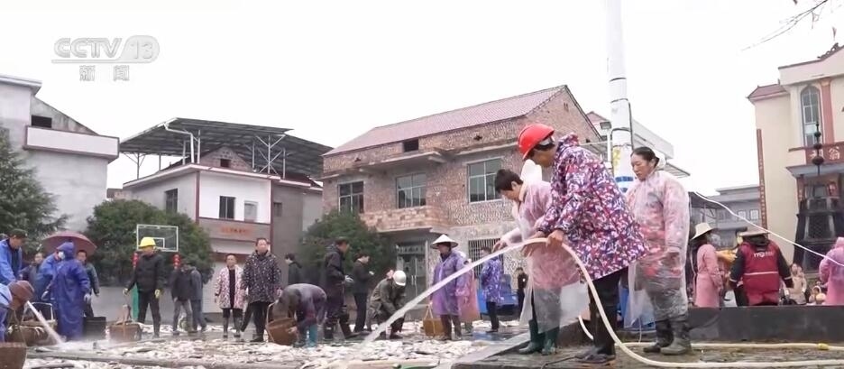 日前,在江西吉安永新縣高市鄉(xiāng)塘內村,一場分魚活動正在舉行。村里的男女老少齊上陣,將剛剛打撈上來的魚鋪滿廣場,按照種類和大小分好,一起共享收獲。
