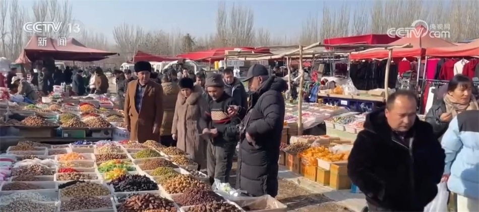 隨著春節(jié)臨近,新疆喀什市大巴扎上也逐漸熱鬧起來(lái)。在喀什市阿瓦提鄉(xiāng)的巴扎上,前來(lái)采購(gòu)的群眾絡(luò)繹不絕,正式開啟了一年一度的迎新年、備年貨模式。
