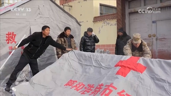 甘肅省臨夏州積石山縣石塬鎮(zhèn)振興社區(qū)副主任孔德義:“他發(fā)揮的作用特別大,因?yàn)樗吘故遣筷?duì)出身,身體素質(zhì)好,搭帳篷這一塊特別強(qiáng)。有他在的話,5分鐘就能完成一個(gè),效率特別高。還有像如何規(guī)避余震帶來的傷害,他先給先鋒隊(duì)講解,我們再逐個(gè)分散開給群眾講解,等同于一個(gè)專業(yè)人士帶領(lǐng)著先鋒隊(duì)去幫助更多的群眾,去服務(wù)群眾。”