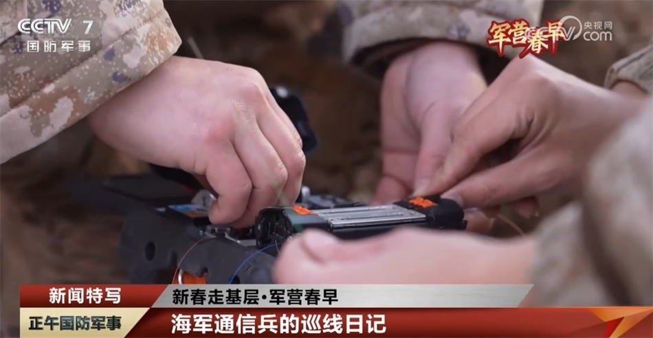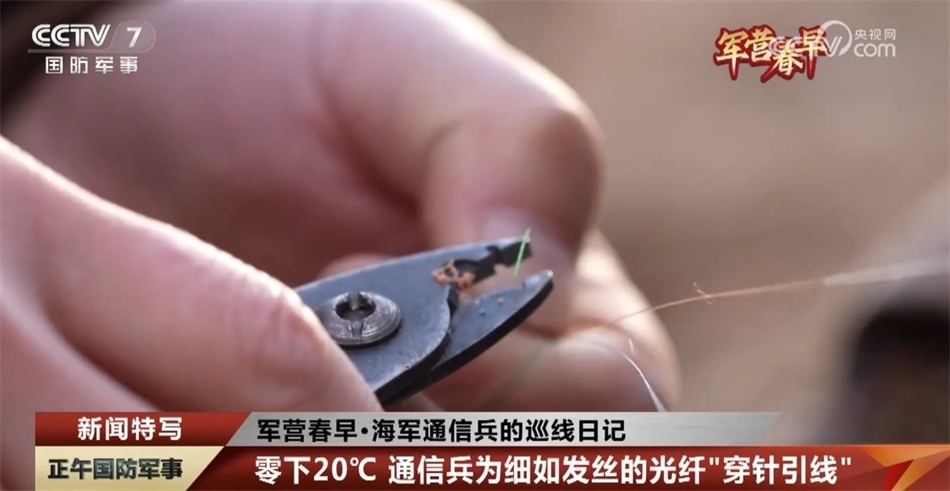 海軍某總站 鄭乾:因?yàn)楣饫w是玻璃材質(zhì)的,冬天特別寒冷,就會(huì)導(dǎo)致光纖特別容易斷裂,特別是在光纖切割刀切割光纖的時(shí)候,一不小心就會(huì)砸斷,有可能出現(xiàn)強(qiáng)行熔接的情況,一旦出現(xiàn)這種情況,任務(wù)就(可能)因?yàn)椋〝?shù)據(jù))無(wú)法使用,任務(wù)就會(huì)無(wú)法開展、失敗了。