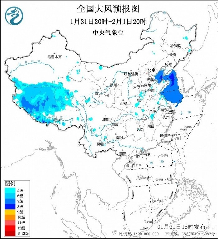 中央氣象臺1月31日18時發(fā)布大風(fēng)藍色預(yù)警:預(yù)計,1月31日20時至2月1日20時,渤海、渤海海峽、黃海大部海域?qū)⒂?~8級、陣風(fēng)9~10級的偏北到東北風(fēng)。