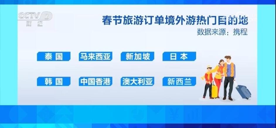 數(shù)據(jù)顯示,春節(jié)期間,國(guó)內(nèi)前十熱門目的地為北京、上海、廣州、深圳、哈爾濱、成都、西安、杭州、三亞、昆明。出境游方面,熱門旅游目的地則包括泰國(guó)、馬來西亞、新加坡、日本、韓國(guó)、中國(guó)香港、澳大利亞、新西蘭。