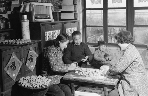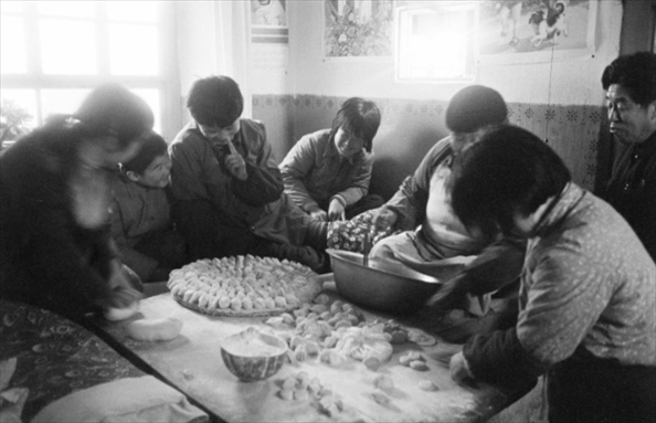 1981年,內(nèi)蒙古呼倫貝爾牧民高高興興包餃子過春節(jié)。