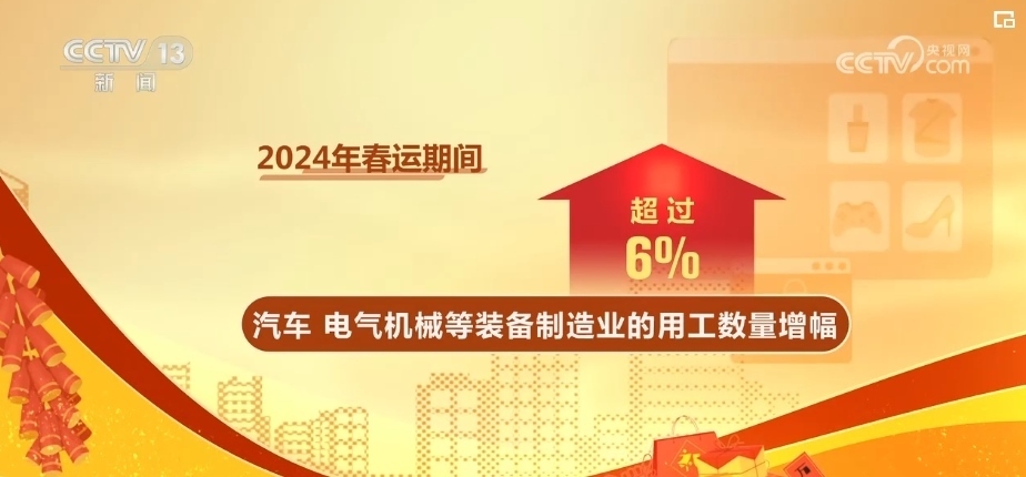 其中,食品和家具制造等產業(yè)的用工數量增幅最明顯,達到了6.6%。同時,汽車、電氣機械等裝備制造業(yè)的用工數量增幅也超過了6%。