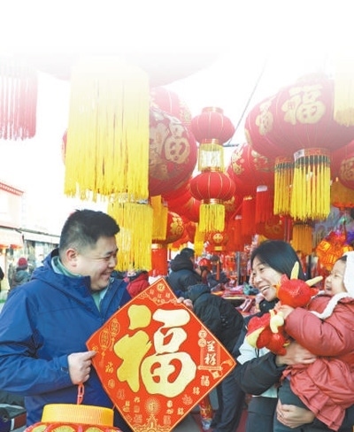 河北省唐山市,市民在挑選“福”字。朱大勇攝(人民視覺)