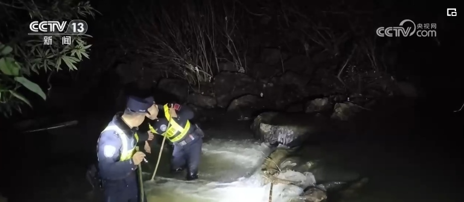 在廣西崇左的中越邊境線上,憑祥邊境管理大隊(duì)三色橋抵邊警務(wù)室執(zhí)勤民警在深夜里巡邊,檢查邊境防護(hù)設(shè)施,遇到湍急的溪流,挽起褲腳涉水而過(guò)。