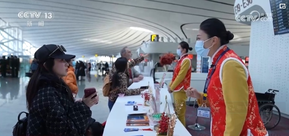 2月9日,超過(guò)13萬(wàn)名旅客通過(guò)北京大興機(jī)場(chǎng)乘飛機(jī)旅行或回家過(guò)年。為了給乘客的旅途增一絲暖意,添一分平安,大興機(jī)場(chǎng)年輕的服務(wù)大使們,在崗位上默默奉獻(xiàn)著。