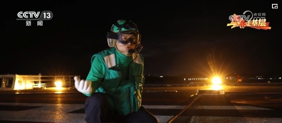 引導員唐曉菁的工作是負責引導艦載機就位、起飛。由于甲板上設備眾多,她的一舉一動都至關(guān)重要,戰(zhàn)機起飛時,她的戰(zhàn)位距離飛機發(fā)動機只有不到20米。