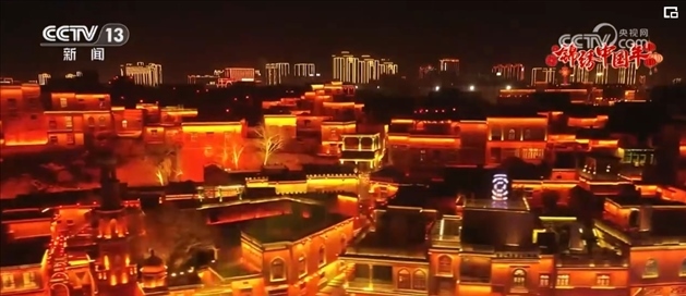 當(dāng)夜幕降,臨燈光亮起,總臺(tái)春晚新疆喀什分會(huì)場(chǎng)主舞臺(tái)在與喀什古城民居交相輝映,喀什古城變了浪漫舞臺(tái)。土陶店、手打銅器店等特色店鋪門前站滿了游客??救?、抓飯、鴿子湯等特色美食更是吸引著大家駐足品嘗。