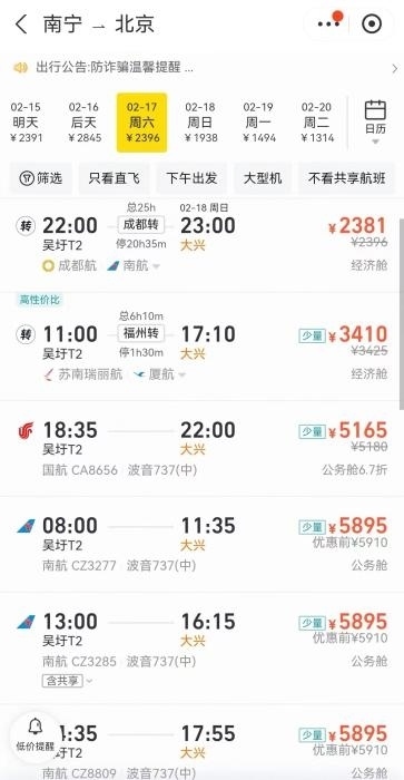 春節(jié)假期急需返程,又不想買高價公務(wù)艙,不少人開始做起攻略。