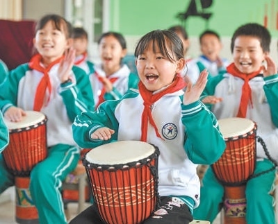 江西省樟樹市義成鎮(zhèn)中心小學(xué)學(xué)生在練習(xí)樂器演奏。目前,我國基礎(chǔ)教育普及水平總體達到世界中上行列。周 亮攝(影像中國)