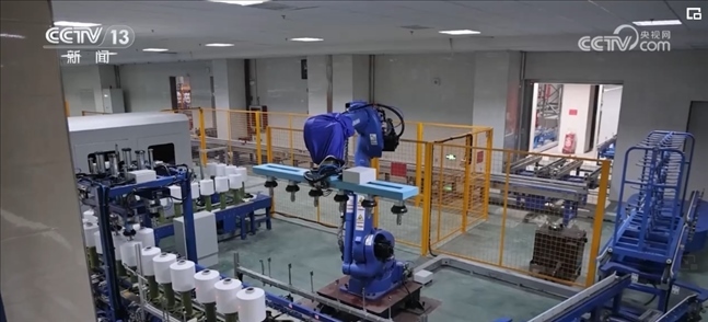 研發(fā)快速、制造智能,在浙江的一個(gè)錦綸生產(chǎn)車間,從原料配送、落筒、絲餅傳輸檢測(cè)、包裝和倉儲(chǔ)都已實(shí)現(xiàn)全流程智能制造,24小時(shí)開工。