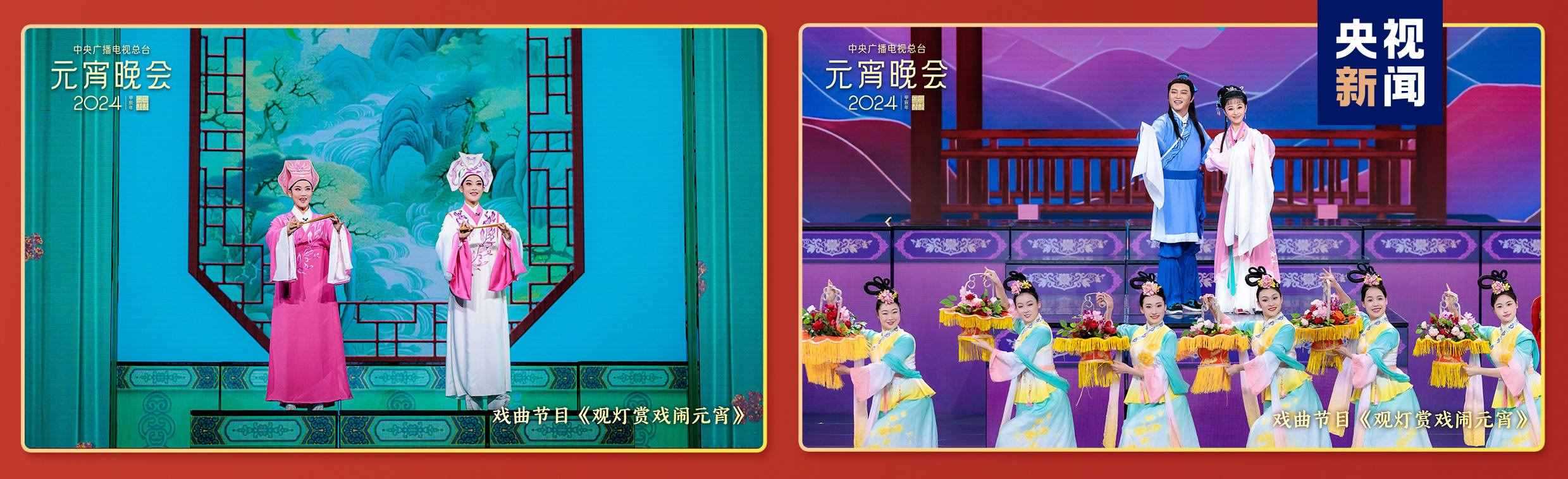 戲曲節(jié)目中,伴隨著“火樹千春妍,元夕月正圓,歡歌笑語喧”的戲腔戲韻,閩劇戲歌首次亮相總臺元宵晚會。其他劇種還玩上了跨界表演,熟悉的旋律響起,站在舞臺上的表演者卻是令人直呼意外的“混搭”組合。陳麗君與黃齡攜手帶來越劇《梁?!愤x段,潘檸靜與沙溢共唱黃梅戲《天仙配》,在上元之夜演繹傳世愛情故事,“戲曲真的出圈了”“誰說年輕人不聽戲,永遠為經(jīng)典唱段打call”。