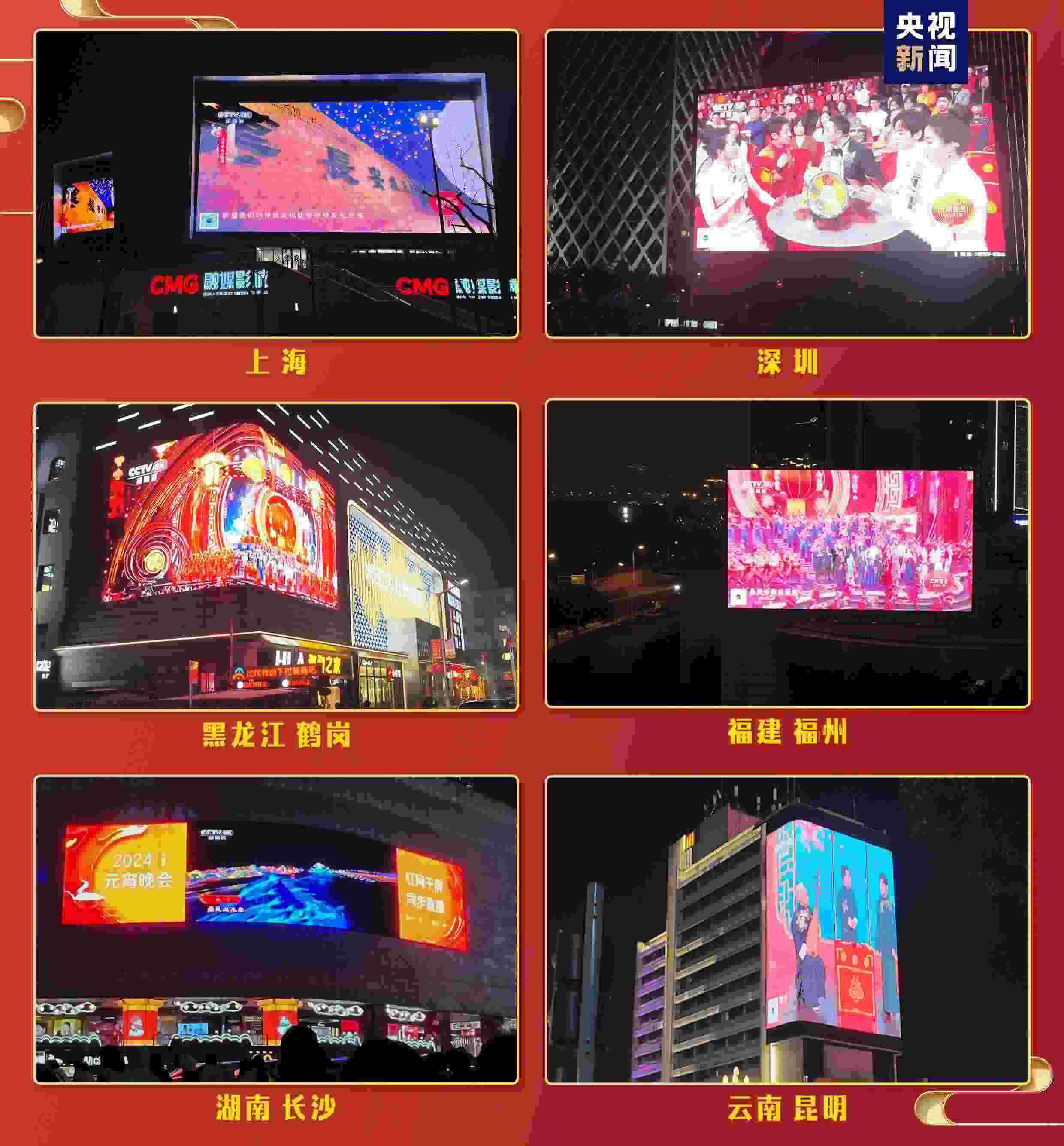 “海外千屏”持續(xù)閃耀,跨越山海點亮全球地標。充滿濃郁中國年味兒的《2024年元宵晚會》宣傳片登陸美國、德國、意大利、俄羅斯、南非、巴西、阿聯(lián)酋等全球17個國家、25座城市的2627塊戶外大屏和院線銀幕。意大利米開朗琪羅廣場、非洲第一高樓——埃及新行政首都中央商務區(qū)標志塔等地標大屏亮起“中國紅”,帶當?shù)孛癖姵两礁惺苤袊?jié)日的喜慶氛圍。