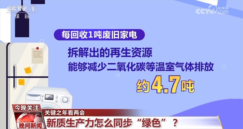 數(shù)據(jù)顯示,2023年,冰箱、洗衣機(jī)、空調(diào)等主要品類家電保有量超過30億臺(tái),一些家電使用了十多年、二十年,更新?lián)Q代的需求和潛力很大。據(jù)統(tǒng)計(jì),2023年,我國廢舊家電回收總量達(dá)450萬噸,而每回收1噸廢舊家電,拆解出的再生資源能夠減少二氧化碳等溫室氣體排放約4.7噸。