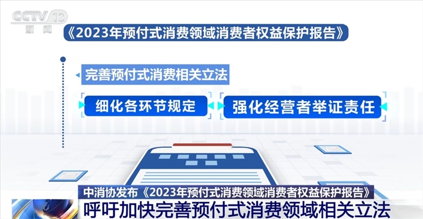 預(yù)付款項(xiàng)具有付款在先、消費(fèi)在后的特點(diǎn),消費(fèi)者權(quán)利的實(shí)現(xiàn)有賴于經(jīng)營(yíng)者的信用及經(jīng)營(yíng)情況,具有較高的不確定性或風(fēng)險(xiǎn)性,《報(bào)告》建議,完善預(yù)付式消費(fèi)相關(guān)立法,細(xì)化各環(huán)節(jié)規(guī)定,強(qiáng)化經(jīng)營(yíng)者舉證責(zé)任;強(qiáng)化預(yù)付式消費(fèi)行政監(jiān)管,推動(dòng)聯(lián)合整治,實(shí)施信用約束和懲戒;加大預(yù)付式消費(fèi)司法救濟(jì)力度,減輕消費(fèi)者舉證責(zé)任,建立消費(fèi)糾紛訴調(diào)對(duì)接工作機(jī)制;重視發(fā)揮消協(xié)組織作用,匯聚社會(huì)各方力量,促進(jìn)預(yù)付式消費(fèi)社會(huì)共治。