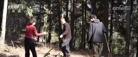 像往年一樣,植樹節(jié)這天,黃振芳的大兒子,66歲的黃傳融帶著女兒和外孫,拿著鐵鍬和香樟樹苗上山種樹。鏟土、挖穴、扶苗培土,黃傳融手把手地示范。