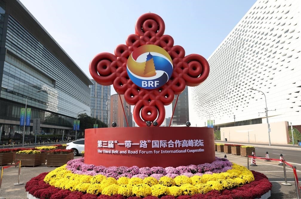 這是2023年10月17日在北京國家會(huì)議中心附近拍攝的“一帶一路”國際合作高峰論壇景觀布置。新華社記者 陳斌 攝