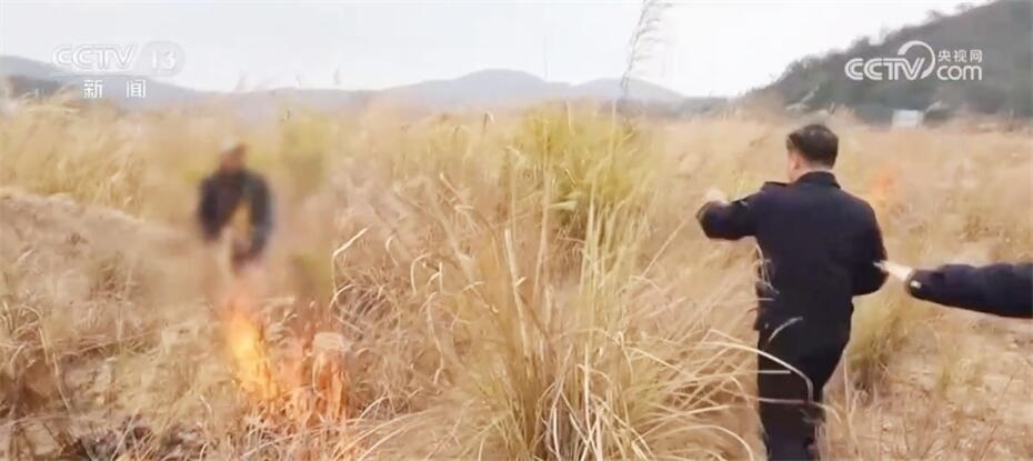 抵達現(xiàn)場后消防人員看到,一個村民正在林區(qū)附近邊吸煙邊焚燒雜草?,F(xiàn)場以冬茅草等易燃燒的植被為主,旁邊就是林區(qū),一旦起風,火勢可能會失控蔓延引發(fā)山火。