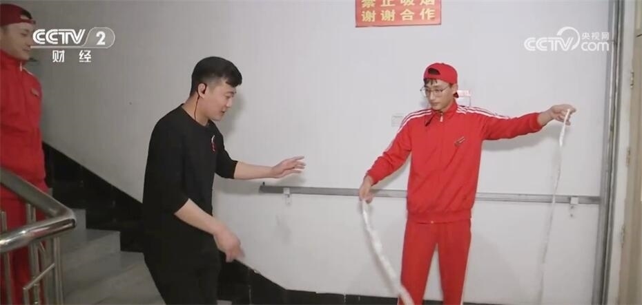 中午兩點左右,史昌換班,可以休息一會兒,趁著這個空檔,史昌帶上兩個徒弟去樓梯間訓練甩面。甩面是史昌所在火鍋店吸引客流的重要業(yè)務,去年史昌一共帶了3個徒弟。隨著門店生意日漸紅火,史昌預計今年得帶出9個徒弟。