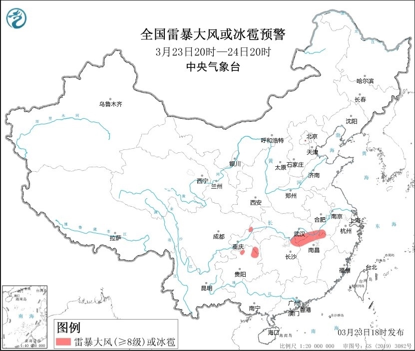 央視網(wǎng)消息:中央氣象臺3月23日18時繼續(xù)發(fā)布強對流天氣藍色預(yù)警。預(yù)計3月23日20時至24日20時,湖北東部、湖南北部、江西北部、重慶東南部、貴州北部等地的部分地區(qū)將有8-10級雷暴大風(fēng)或冰雹天氣;安徽南部、江蘇南部、湖北東南部、湖南東北部、江西北部、浙江北部、重慶北部等地的部分地區(qū)將有短時強降水天氣,最大小時雨量20-40毫米,局地可達50毫米以上。