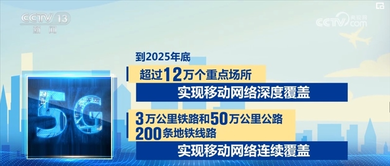 “信號升格”專項行動通知提出,面向政務中心、文旅、醫(yī)療機構、高等學校、交通樞紐等11個重點場景加強網絡覆蓋。到2025年底,超過12萬個重點場所實現(xiàn)移動網絡深度覆蓋、3萬公里鐵路和50萬公里公路、200條地鐵線路實現(xiàn)移動網絡連續(xù)覆蓋。移動網絡平均下載速率不低于220兆,平均上傳速率不低于45兆。網絡卡頓、時延等主要指標全面優(yōu)化,移動網絡達標速率占比不低于95%,5G流量占比顯著提高。