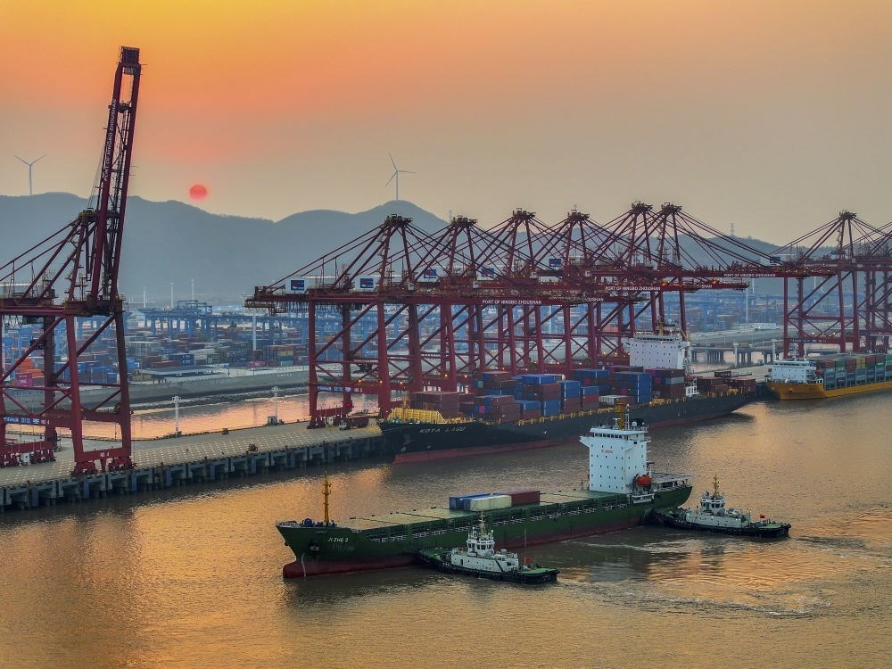 浙江寧波舟山港金塘港區(qū)碼頭作業(yè)繁忙(2024年2月11日攝,無人機(jī)照片)。新華社發(fā)(姚峰 攝)